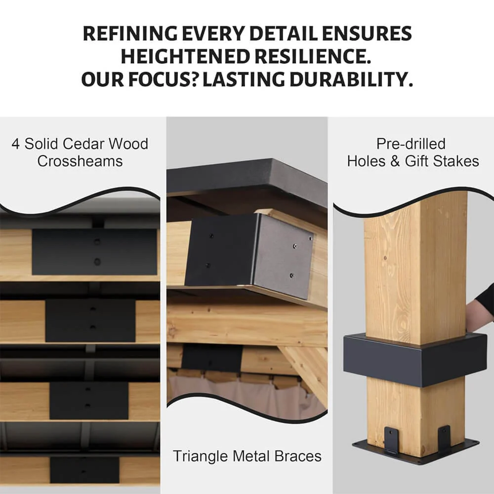 Transform your backyard into a luxurious retreat with this Heavy Duty Premium Outdoor All-Season Wooden Cedar Hardtop Gazebo. Crafted for outdoor enthusiasts, homeowners, and event planners, this versatile gazebo combines style, functionality, and durability, making it the perfect addition to any outdoor space.