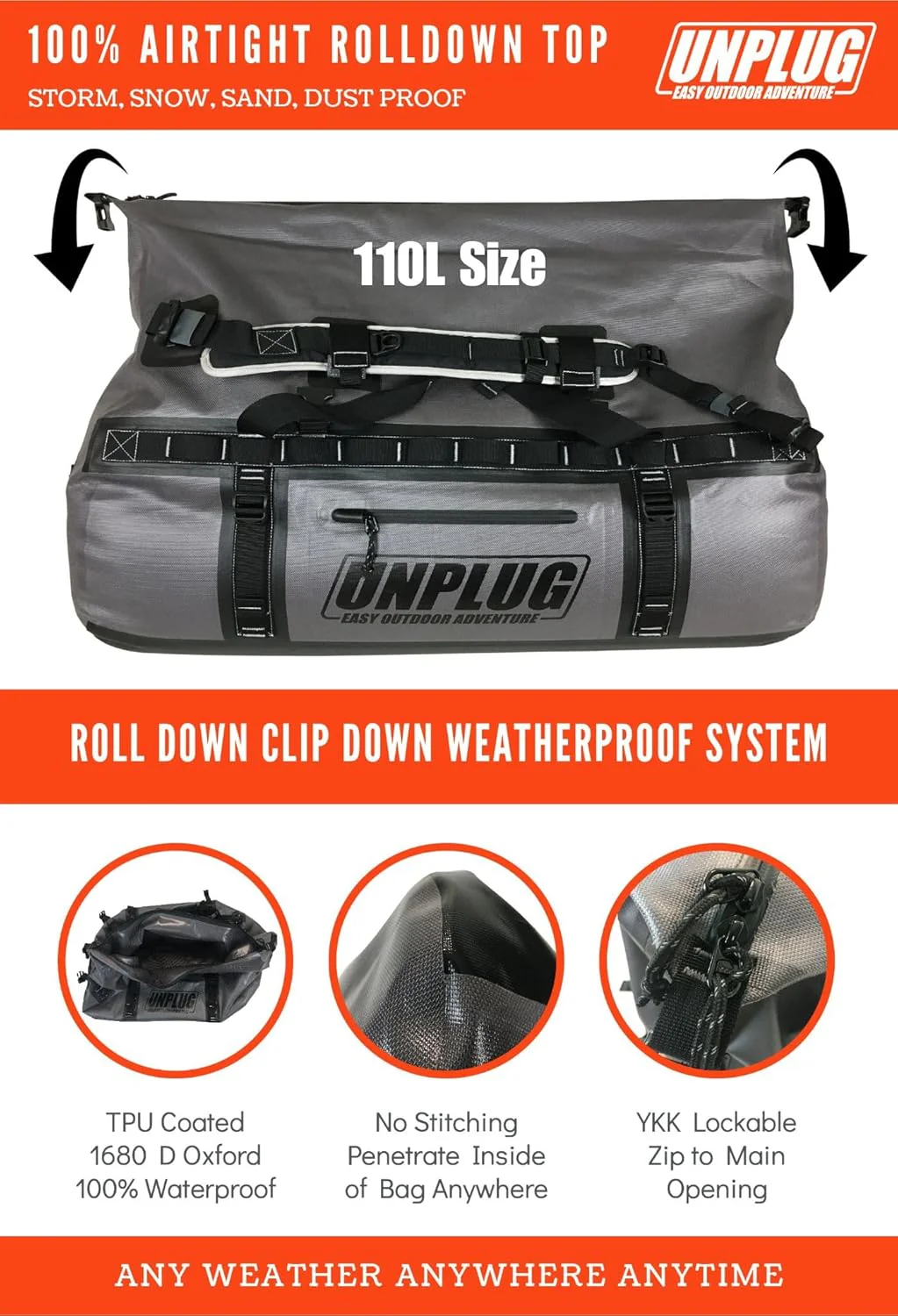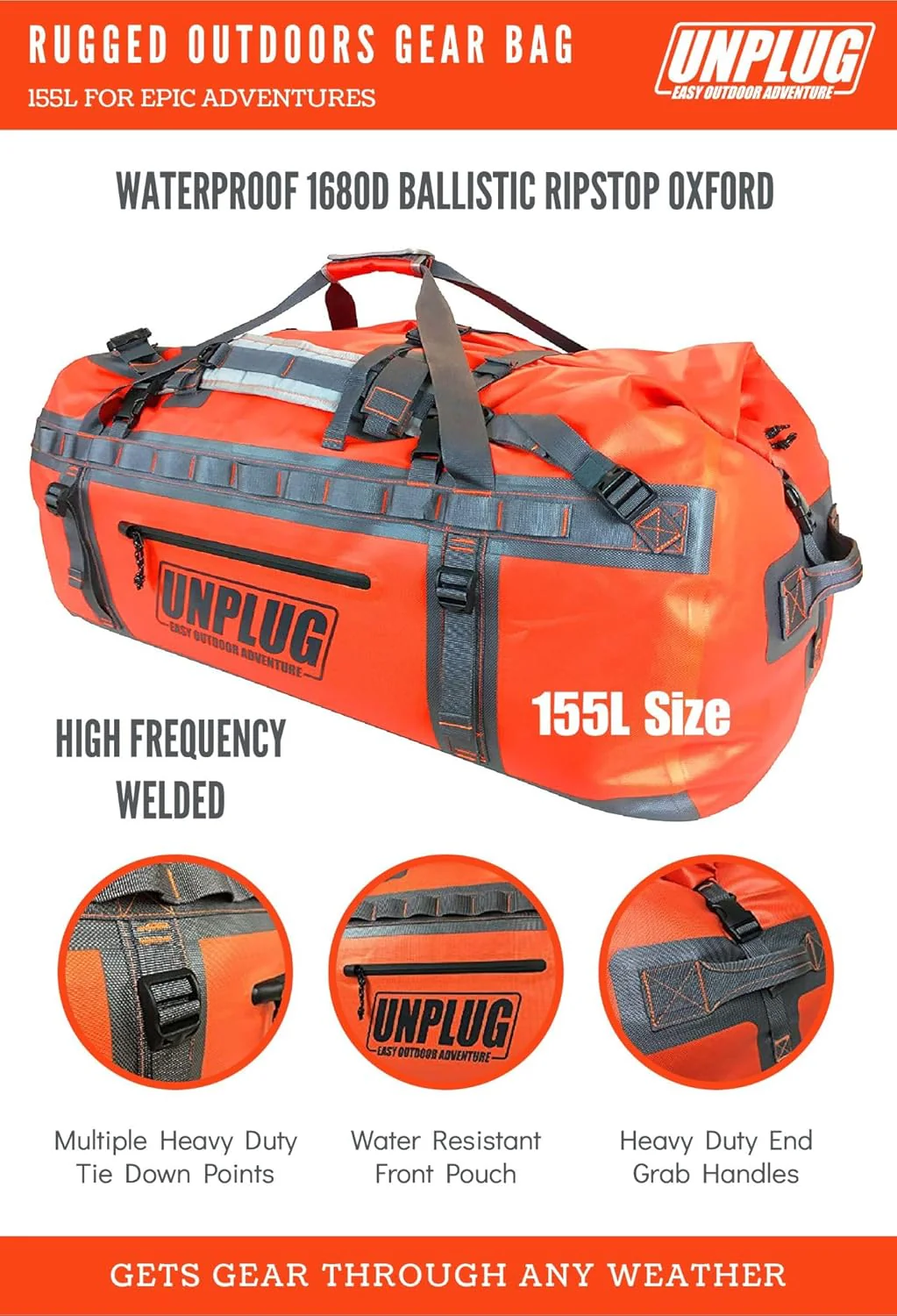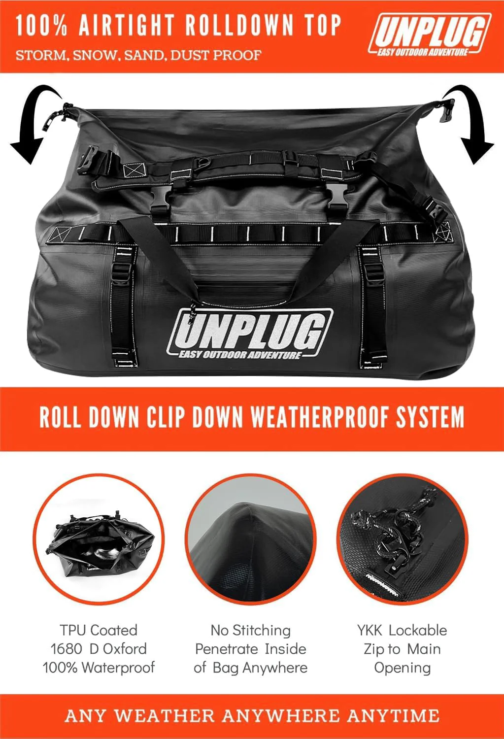 | Model Name | ��Unplug 65l Orange Waterproof Duffel Bag |
